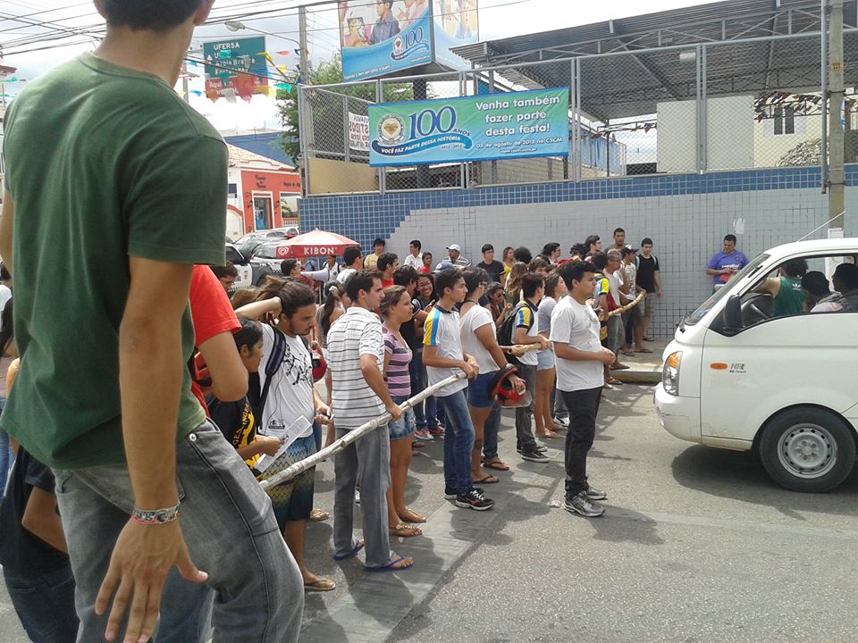Os estudantes ainda fecharam o cruzamento da Av. Augusto Severo com a Av. Alberto Maranhão impedindo a passagem de veículos no local.