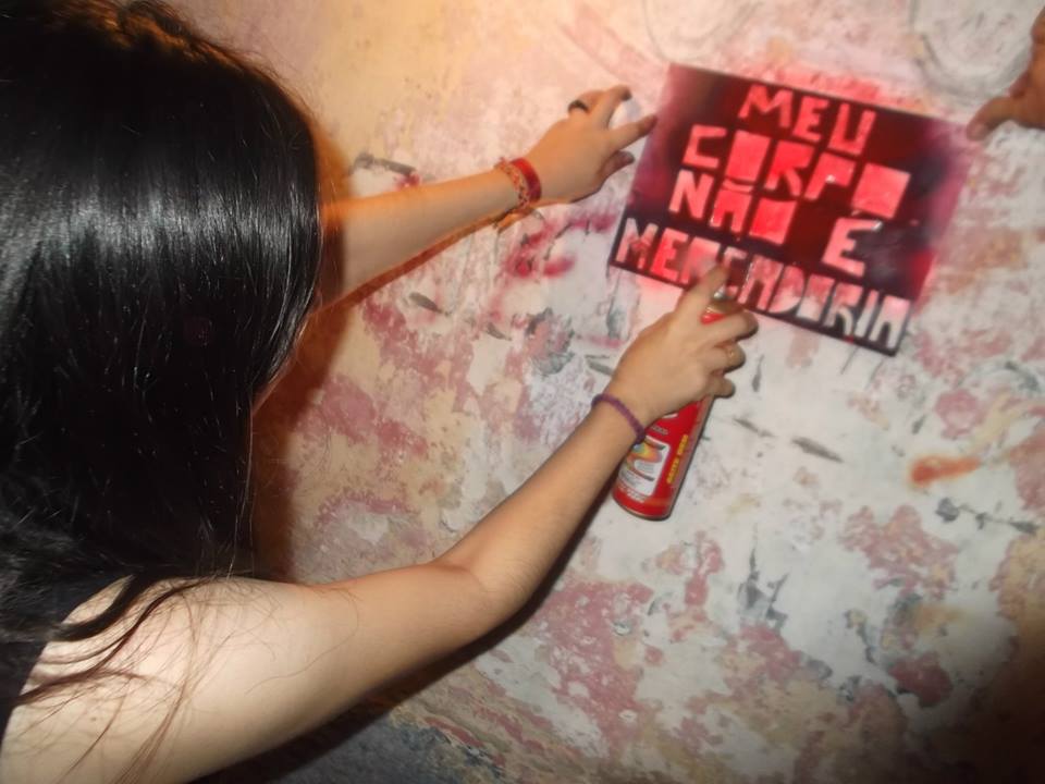 Na última sexta, 26 de julho, a intervenção feminista no beco dos artistas reuniu mulheres do Ponto de Cultura Mulheres Jovens Construindo Cultura e Autonomia (CF8), meninas da batucada feminista (MMM) e mulheres que se sentiram atraídas pelo convite de participar da mostra de cinema realizada pelo Ponto (com apoio da Fundação José Augusto e Governo Federal) e/ou pelo som do batuque feminista. Aproximadamente, mais de 50 jovens participaram deste momento de protagonismo em que – entre mulheres – se sentiram a vontade para se expressar e interagir umas com as outras.