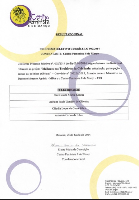 resultado final Publicado 25 de junho de 2014 at 447 × 642 in RESULTADO DO PROCESSO SELETIVO 002/2014 – CONVÊNIO 792226/2013 (MDA-CF8)