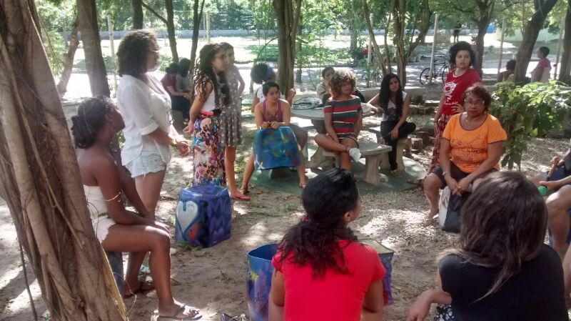 Em outro espaço, as meninas da Batucada Feminista do RN, realizaram uma oficina de batuques em preparação para o ato de rua. Tendo como tema “Lutar não é crime: contra os BRICS e a exploração capitalista”, o ato contou com a participação de 30 militantes da Marcha Mundial das Mulheres e representantes de outros movimentos e terminou seu percurso na Praça da Juventude, na comunidade Serrinha.