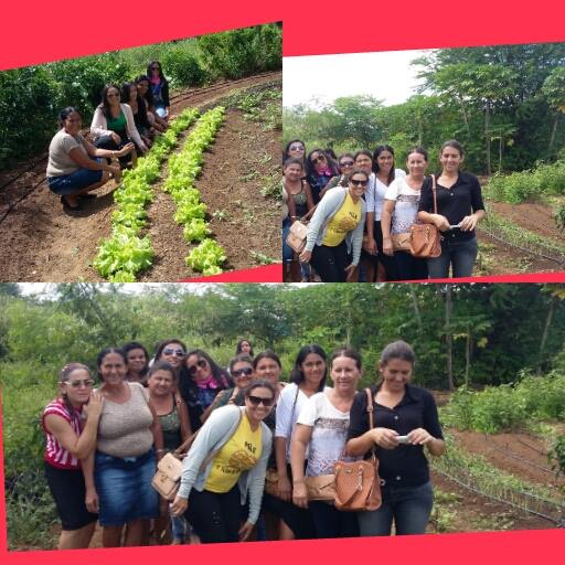 Mazé apresentou para as mulheres de Rio Novo o seu canteiro, a criação de galinhas, o PAIS, uma tecnologia que tem como base a agroecologia e funciona com um galinheiro no centro, uma horta ao redor, um quintal agroecológico e um sistema de irrigação por gotejamento, os viveiros de tilápias e criação de ovelhas e de meliponicultura (abelhas sem ferrão).