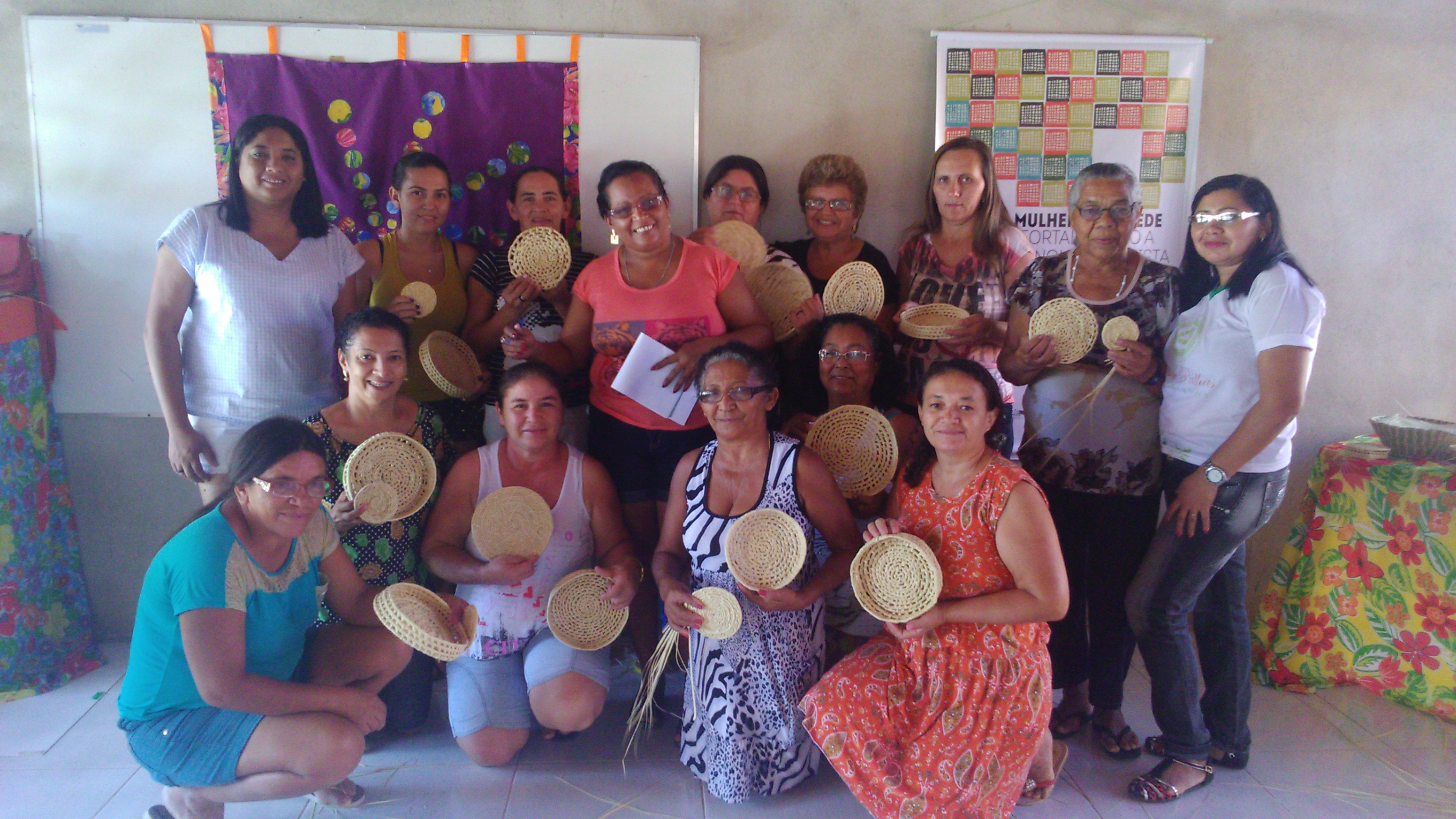 Foi realizada entre os dias 25 a 27 deste mês uma capacitação em artesanato de palha com mulheres do projeto “Mulheres em rede fortalecendo a economia feminista e solidária” (Entre a terra e o mar), desenvolvido pelo Centro Feminista 8 de Março em parceria com o Ministério do Trabalho e Emprego (MTE) e a Secretaria Nacional de Economia Solidária (SENAES). A atividade aconteceu na sede do grupo Mulheres em Ação, no bairro Nova Vida, e teve a participação de 20 mulheres integrantes de grupos de economia solidária das cidades de Apodi, Mossoró, Porto do Mangue, São Rafael, Tibau e Upanema.
