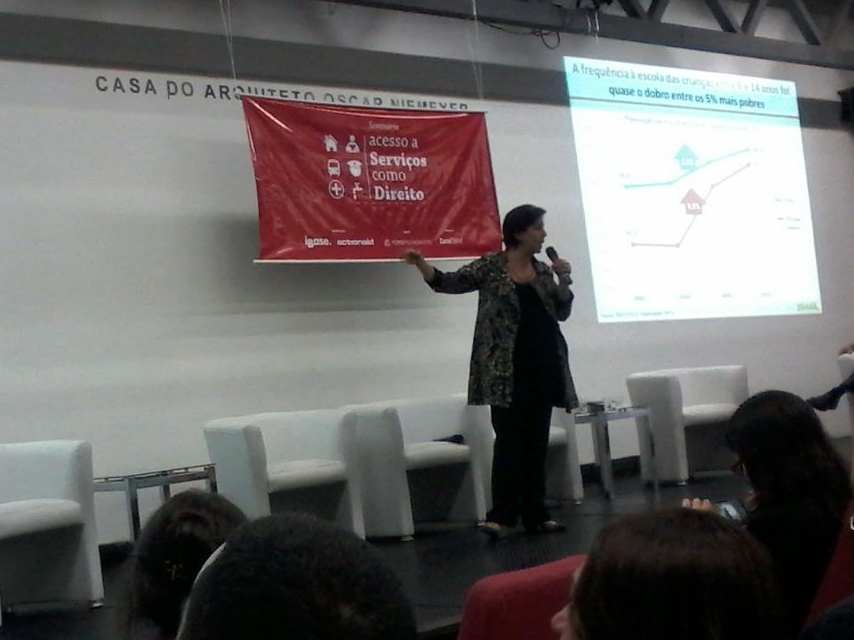 Dando continuidade ao trabalho de articulação e incidência iniciado em 2012 em torno do monitoramento do Plano Brasil sem Miséria, a ActionAid Brasil e Ibase realizam o seminário “Acesso a Serviços como Direito” nos dias 23 e 24 de julho de 2015, no Instituto dos Arquitetos do Brasil, no Rio de Janeiro, com a presença da Ministra de Desenvolvimento Social, do Ministério das Cidades, da Secretaria Geral da Presidência e do BNDES.