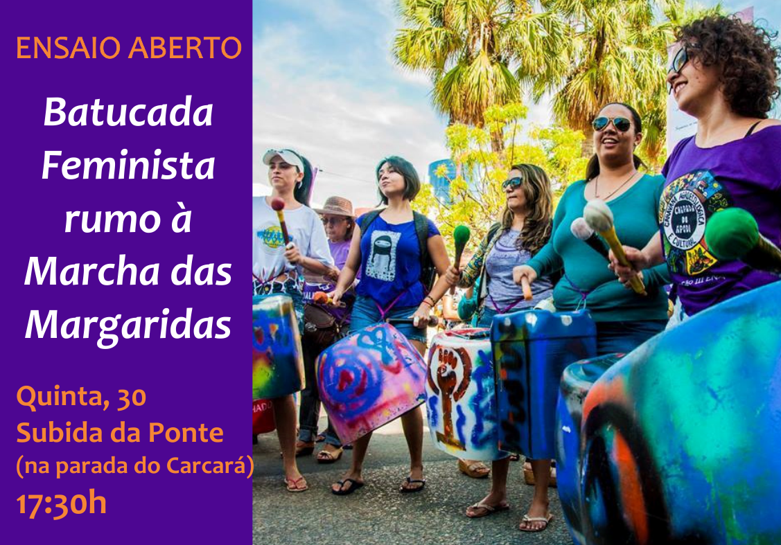 Cerca de 50 jovens da Batucada Feminista da Marcha Mundial das Mulheres de Mossoró estão se organizando para Marcha das Margaridas, caminhada que reunirá cem mil mulheres de todo o país, em Brasília nos dias 11 e 12 de agosto.