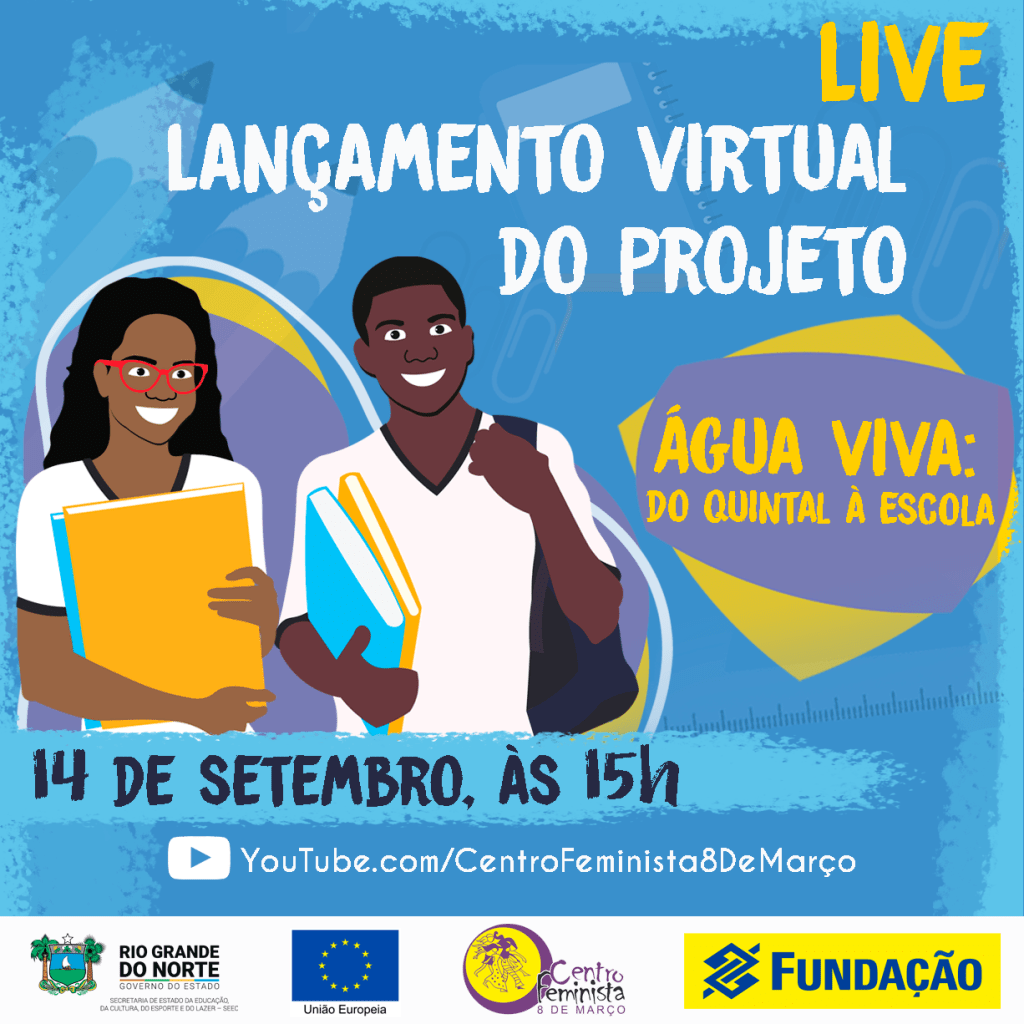 No dia 14 de setembro (segunda-feira), às 15:00, teremos a live de lançamento do Projeto “Água Viva: do quintal à escola”, no canal do Youtube do Centro Feminista 8 de Março, com apresentações das escolas estaduais Antônio Basílio (Parnamirim/RN), Arcelina Fernandes (Macaíba/RN) e Maria Queiroz (Natal/RN). Venha conhecer o nosso projeto e participar desse momento com a gente!