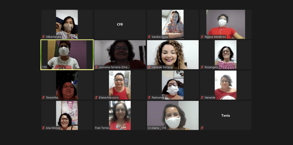 Ainda nessa ocasião, foi feito o repasse acerca da participação do CF8 na campanha de solidariedade, de iniciativa de vários movimentos, para doação de alimentos a mulheres de bairros periféricos e zonas rurais que estejam em situação de insegurança alimentar por causa da pandemia do novo coronavírus.