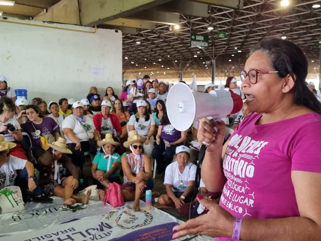 Durante o Tribunal, a Marcha Mundial das Mulheres denunciou o impacto causado pelas transnacionais de energias eólicas aos territórios, com ênfase sobre a vida das mulheres e a destruição dos ecossistemas locais, militarização dos territórios, expulsão das comunidades dos seus territórios. Diante disso, foram enfocadas alternativas de convivência com o semiárido e proteção dos territórios organizados pelas mulheres. A fala foi realizada por Tatiana Muniz, pescadora e militante da Marcha Mundial das Mulheres.