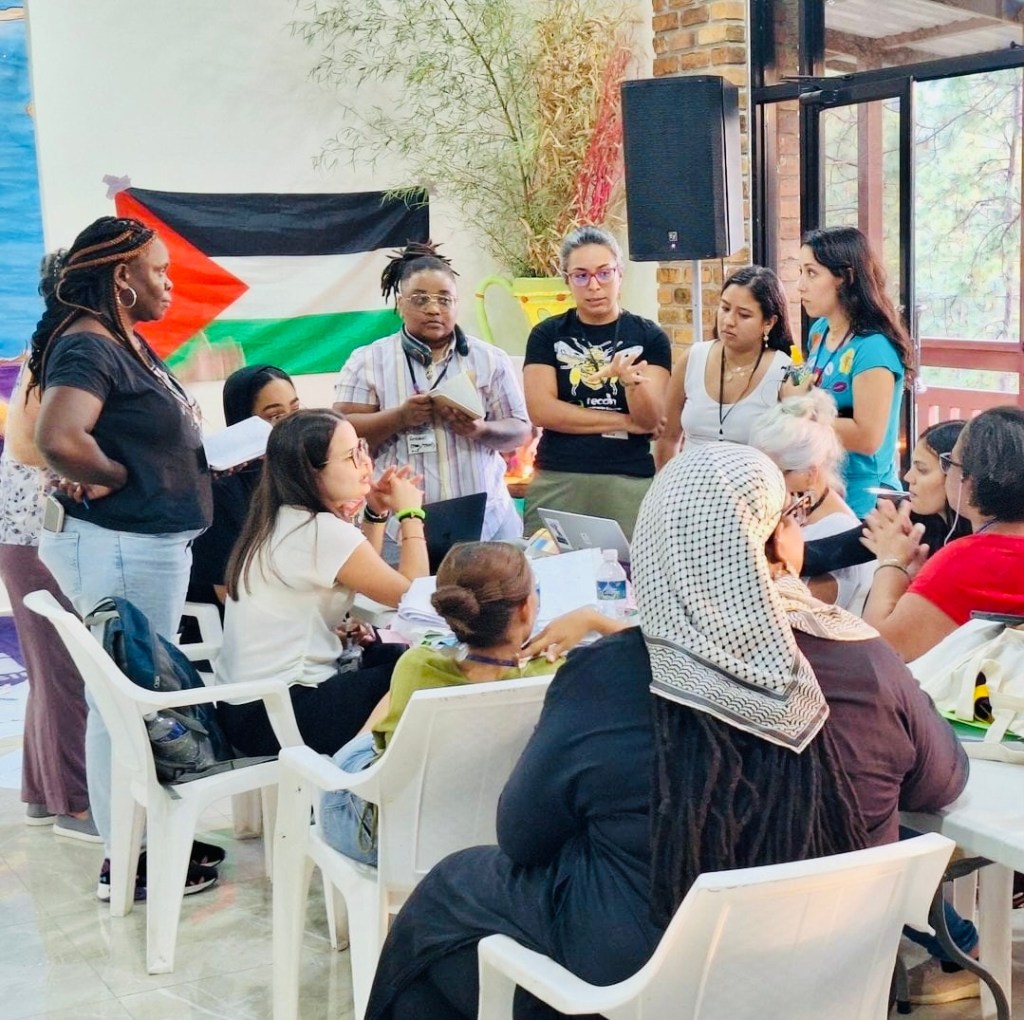 Debates sobre os desafios de ser facilitadora na formação política e uma análise dos contextos globais das participantes também foram centrais, ressaltando os desafios enfrentados, como fundamentalismo religioso, feminicídio, e militarização, mas também a resistência contínua dos movimentos sociais.