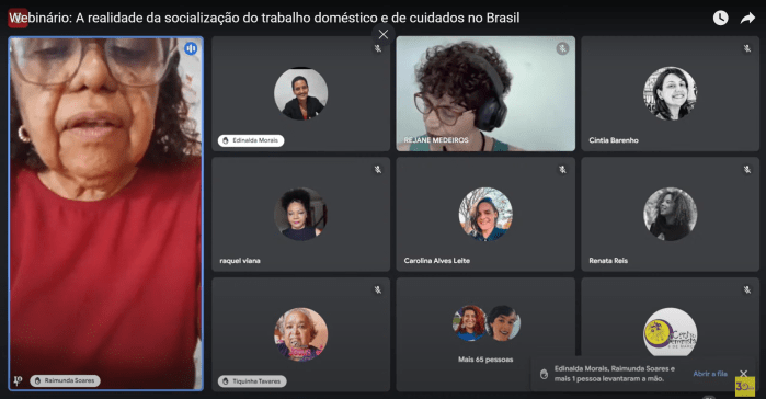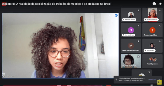 No segundo momento do webinário, mulheres de todas as regiões do Brasil fizeram intervenções sobre a urgência de políticas públicas que promovam a valorização e socialização do trabalho doméstico e de cuidados. As participantes também apresentaram propostas para redistribuir essas responsabilidades de maneira mais justa, desafiando as estruturas patriarcais. Ao final, foram definidos encaminhamentos para os próximos passos, com destaque para a luta pela concretização da Política Nacional de Cuidados, que fora aprovada no Senado Federal concomitante a realização deste webinário.