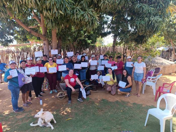 As participantes passam por três ciclos de capacitação: gestão de quintais, organização produtiva e soberania alimentar e nutricional, com análises contextualizadas das realidades familiares e territoriais.