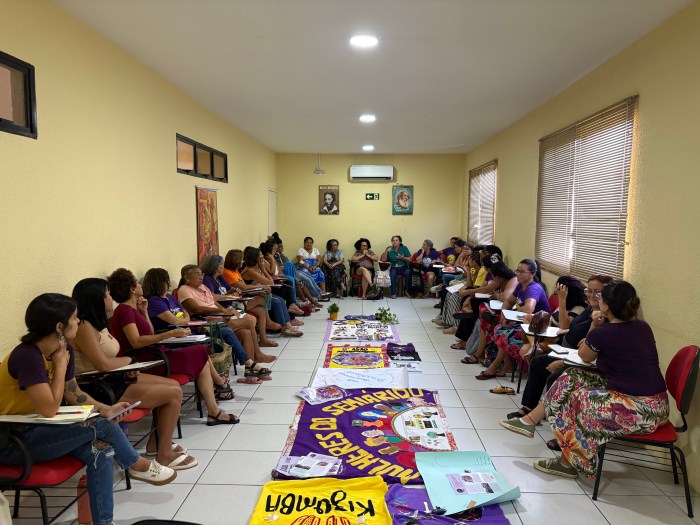 Durante a atividade, foi feito um resgate histórico do feminismo, além de temáticas que são assuntos de mulher: economia feminista, divisão sexual do trabalho, luta pela terra e resistência em seus territórios.