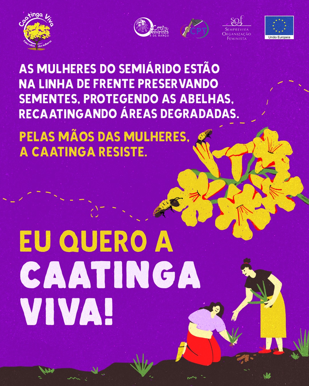 Entre as ações desenvolvidas estão a preservação de sementes crioulas, a proteção das abelhas como polinizadores naturais e a campanha ao incentivo a recuperação de áreas em desertificação com doação e plantação de mudas nativas.
